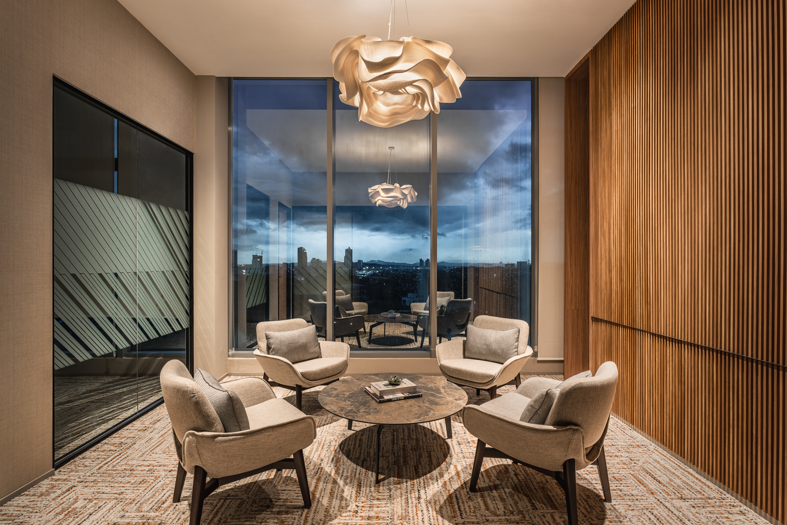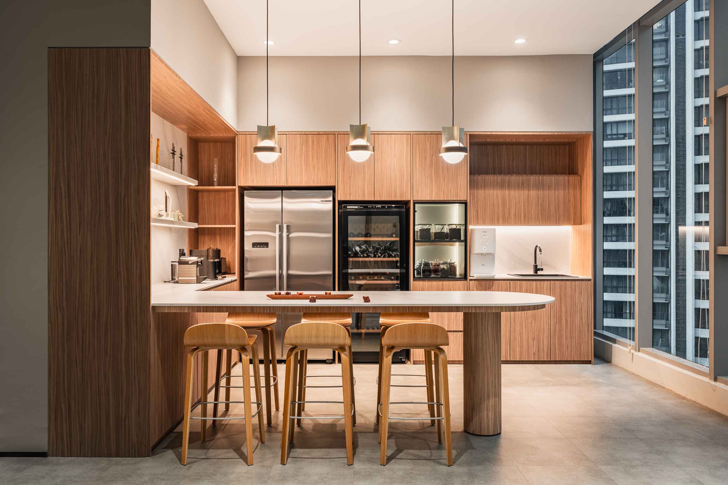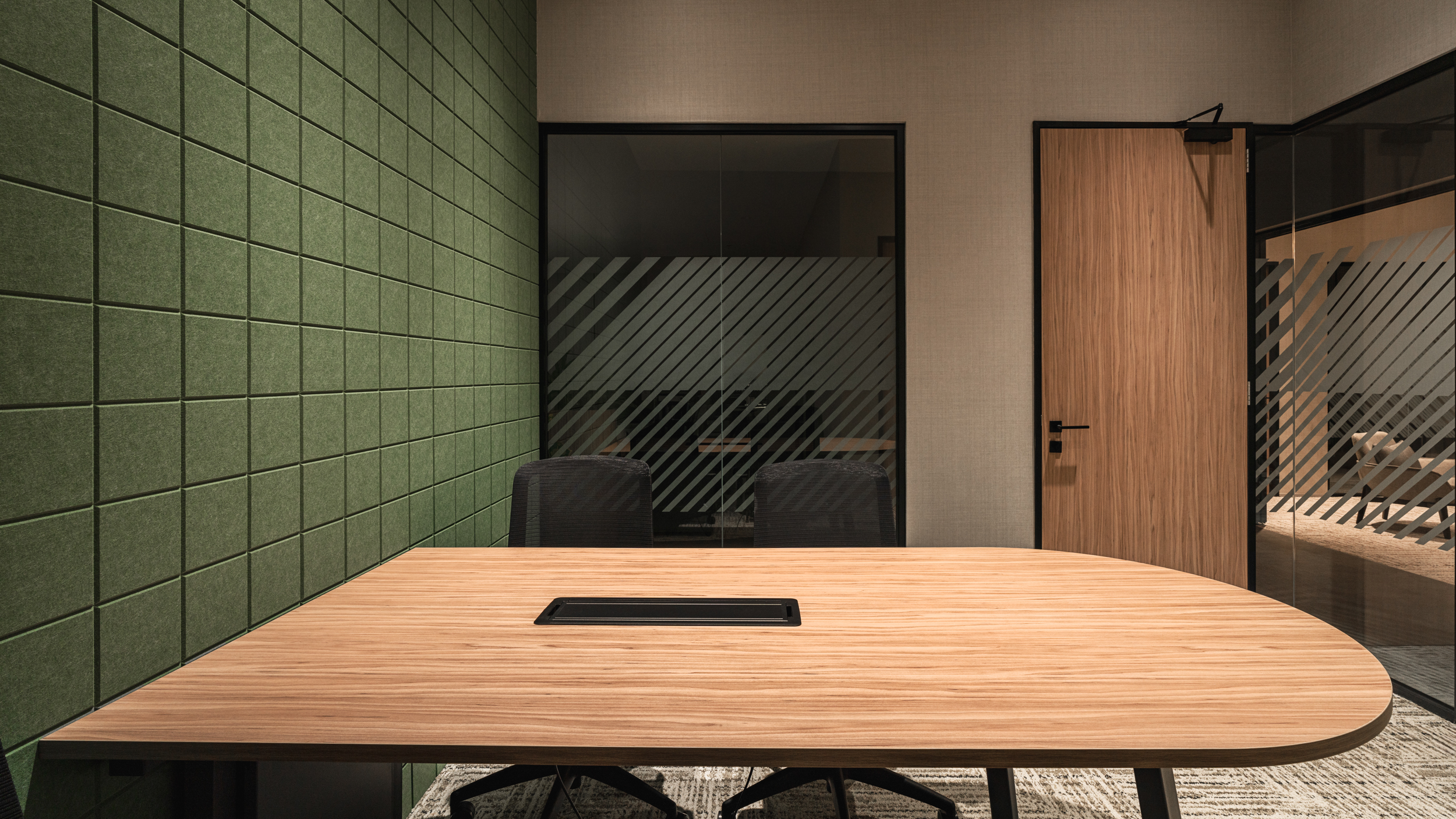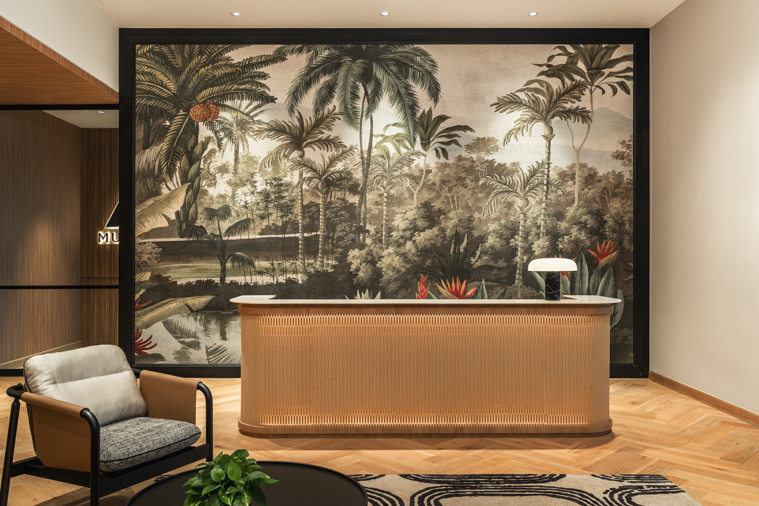 The Office Club is a sophisticated and professional co-working space that blends comfort with a clean, mid-century modern design. Crafted around three brand cores—exclusive corporate environment, safety & well-being, and centralized employee management—the space is tailored to meet the evolving needs of modern businesses.